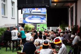 For the craft beer fans, this is a real treat. Brlo has built a huge beer garden at the terrace. Seats are limited, and each reservation comes with a whole Brlo EM package, including beer, popcorn, water, and snacks - the perfect package to guarantee a fantastic evening. The same great atmosphere can be found at the Brlo in Charlottenburg. Be quick to reserve, as tickets sell out fast!